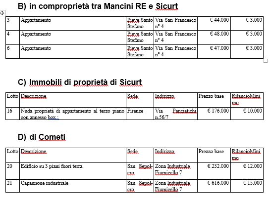 -l’apertura delle buste avverrà alle ore 16.00 del 23 novembre 2017 presso il medesimo Notaio con gara tra gli offerenti;